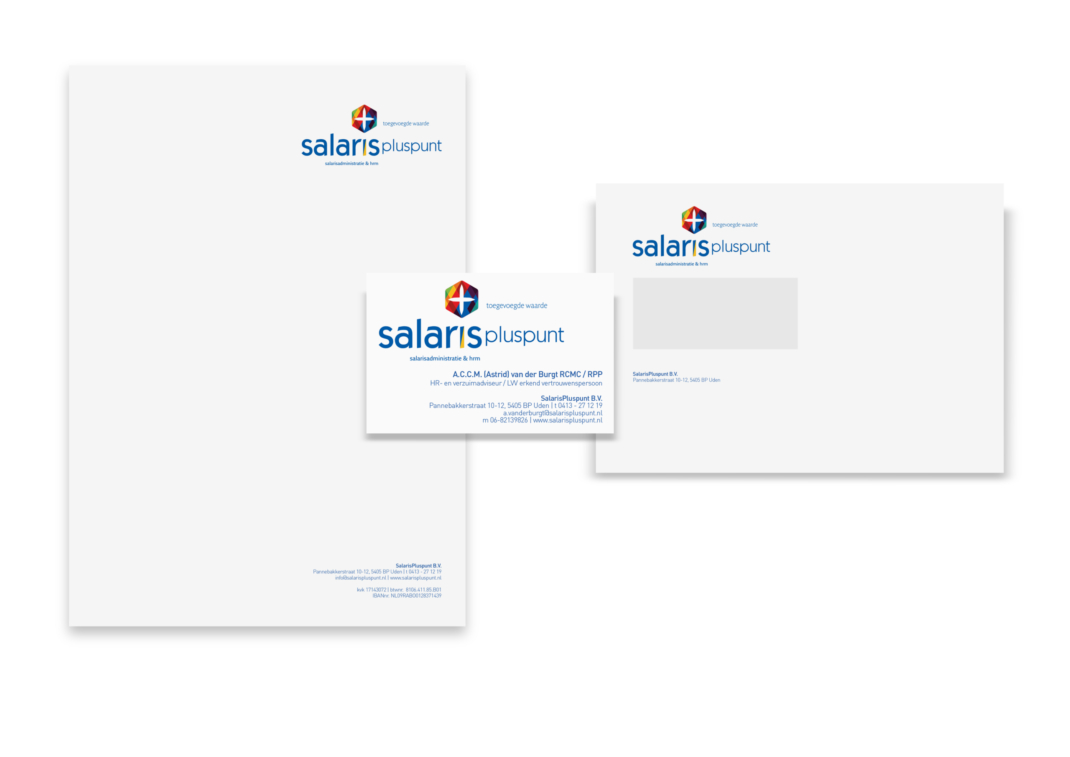 Voor SalarisPluspunt is het logo ontwikkeld, dat is doorvertaald in de huisstijl en website. www.salarispluspunt.nl