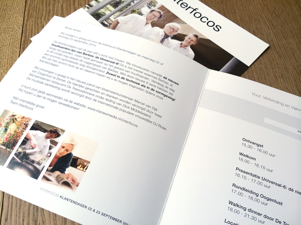 Met het thema 'Vuur, Verbinding en Vakmanschap' introduceert Interfocos een nieuwe Barbas haard uit de reeks van de Universal-6. Dit is een begrip voor de dealers en een icoon voor Interfocos. Deze Barbas houthaard werd gepresenteerd bij Domein Oogenlust, ondersteund met een introductiefilm en een spectaculaire onthulling. Robert de Louwere van Interfocos presenteerde de haarden, twee-sterren restaurant De Treeswijkhoeve van Dick Middelweerd verzorgde de catering en Marcel van Dijk van Oogenlust heeft een uitgebreide rondleiding gegeven.