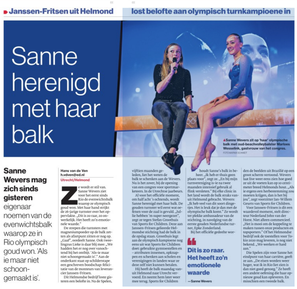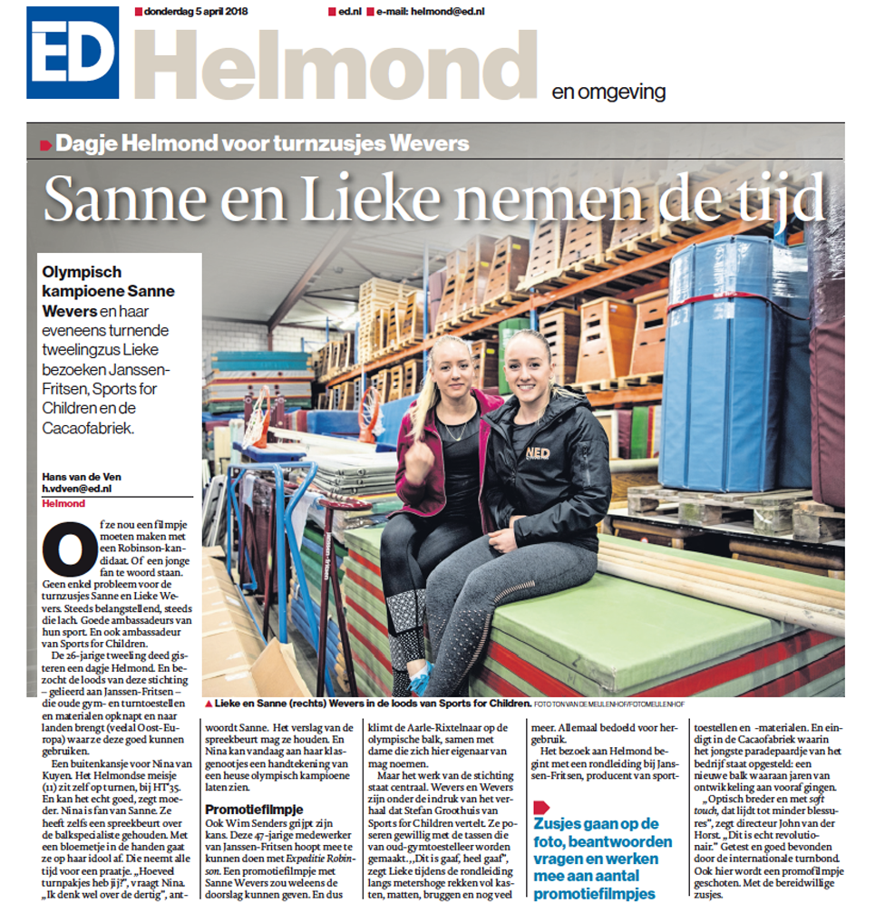 In Helmond hebben de turnzusjes Sanne en Lieke Wevers als ambassadeurs kennis gemaakt met de stichting Sports for Children.