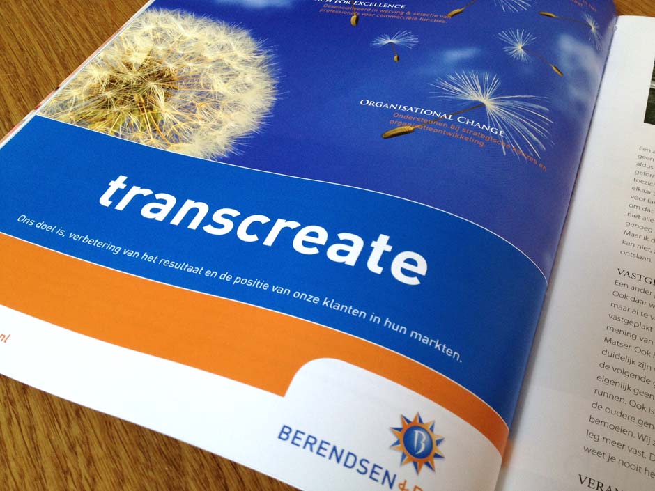 Met de slogan 'transcreate' positioneert Berendsen & Partners zich in de markt op het gebied van sales trainingen. Positionering, huisstijl en website werden ontwikkeld. www.berendsen-partners.nl