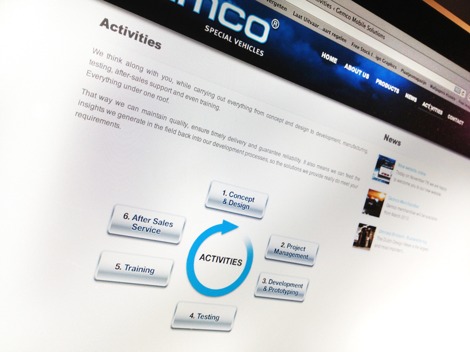 Voor Gemco Special Vehicles is een nieuw positioneringsconcept ontwikkeld getiteld ‘Driven by innovation’. Hierop gebaseerd is de nieuwe website ontworpen en gebouwd, waarbij per marktsegement tevens een eigen intro-clip is geproduceerd.