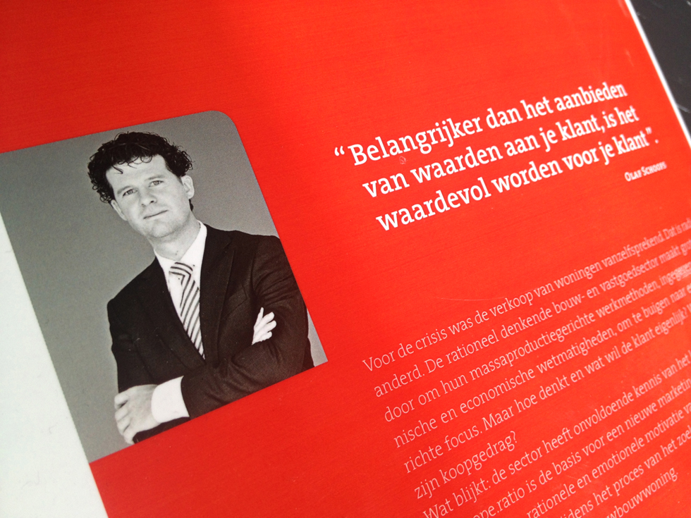 Dit proefschrift werd ontworpen voor Olaf Schoofs. Voor de Masteropleiding aan het Tias Nimbas studeerde hij met deze dissertatie cum laude af. Hij onderzocht de psychologische achtergrond van het koopgedrag van mensen en hun rationele en emotionele motivaties, die (on)bewust doorslaggevend zijn in de pre-aankoopfase van een nieuwbouwwoning.