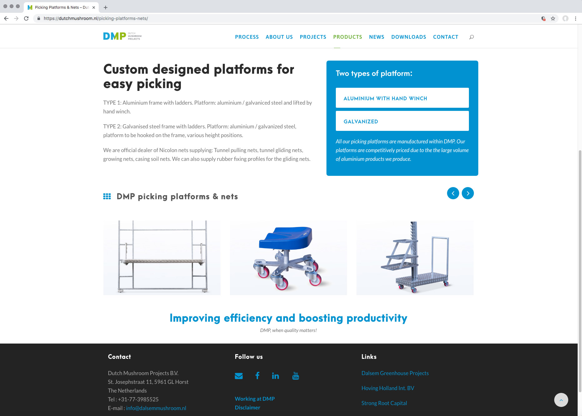 The cultivation of good, high-quality mushrooms is a specialized process. In addition to producing excellent compost and the ideal growing climate, it’s essential to have the right tools. At Dutch Mushroom Projects you are assured of the knowledge, skills and the required experience needed when it comes to selecting and manufacturing these tools.