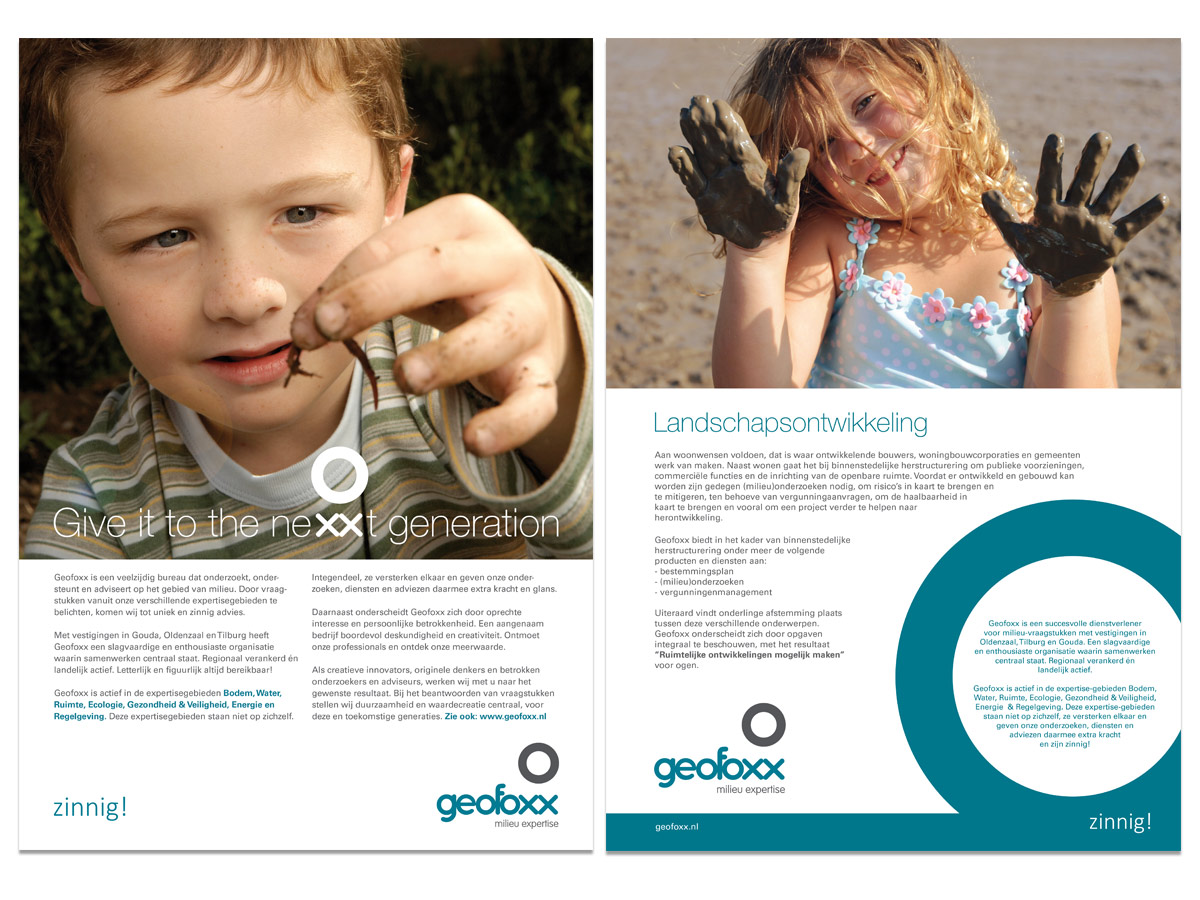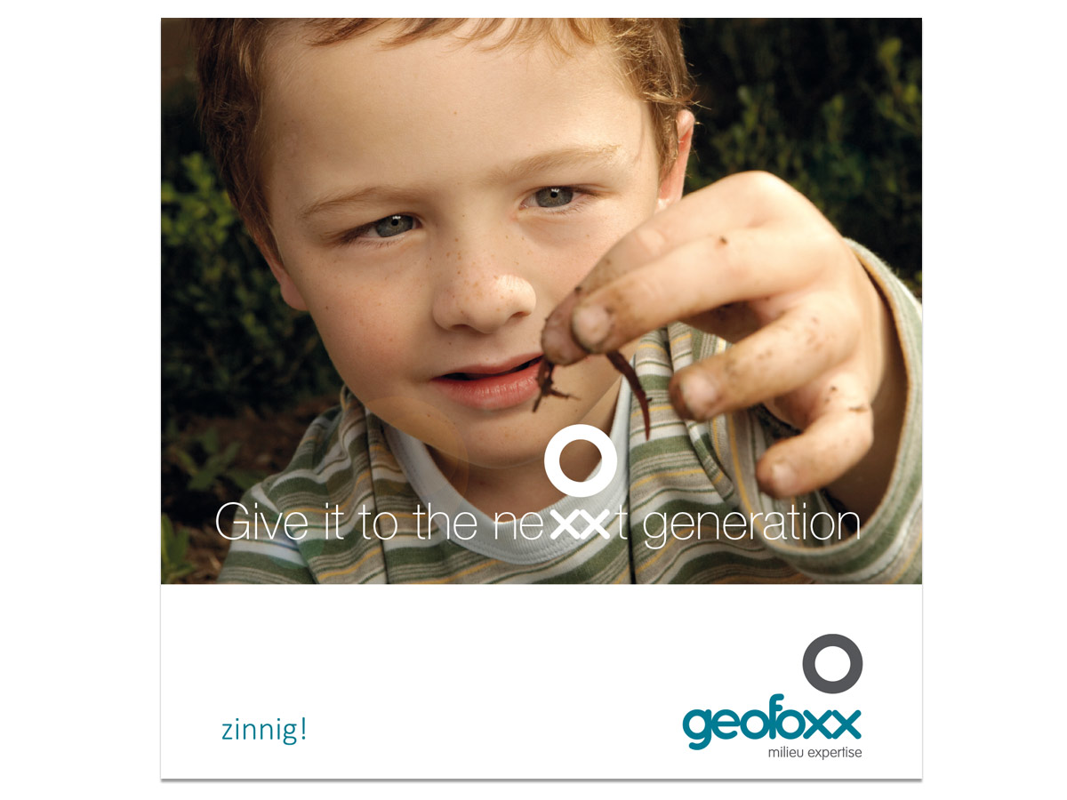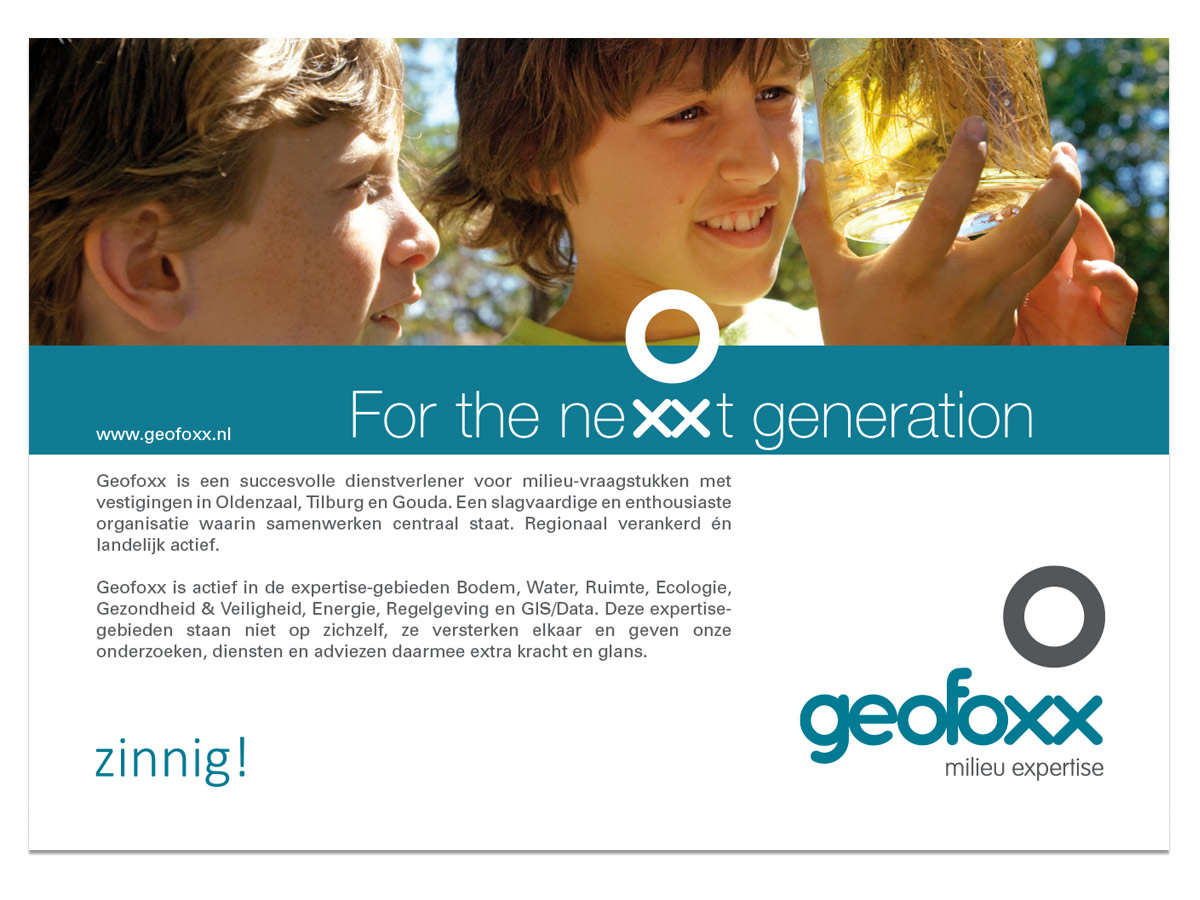 Het bedrijf Geofoxx gespecialiseerd in bodemonderzoek heeft een re-branding ondergaan met een nieuwe merkpositionering. Met ‘zinnig’ positioneert Geofoxx zich op een manier waarmee het voor hen belangrijk is om een goed onderbouwd en gedegen advies uit te brengen. Alles wat ze doen wordt bekeken vanuit een zinnige wijze, ook voor ‘the nexxt generation’.