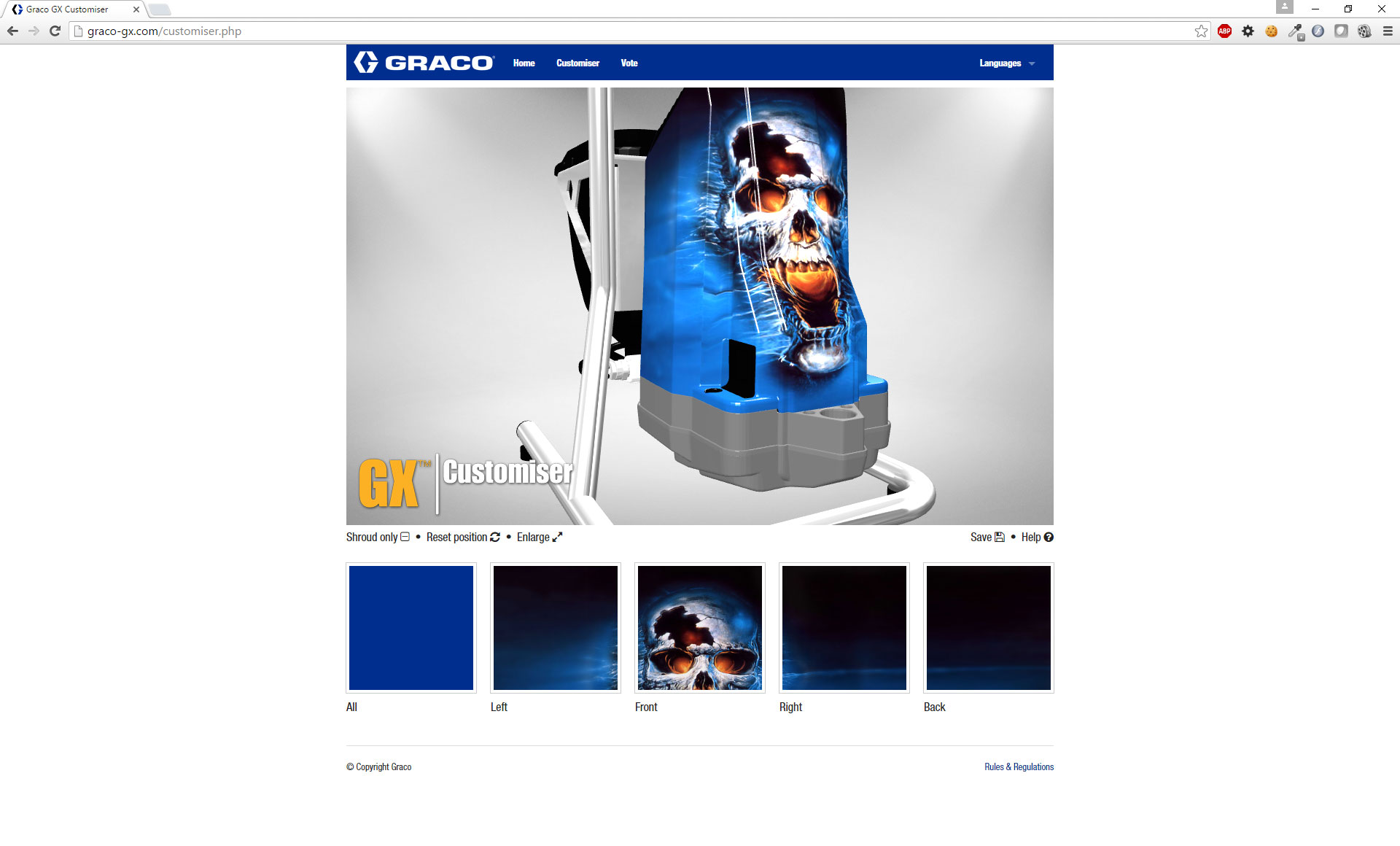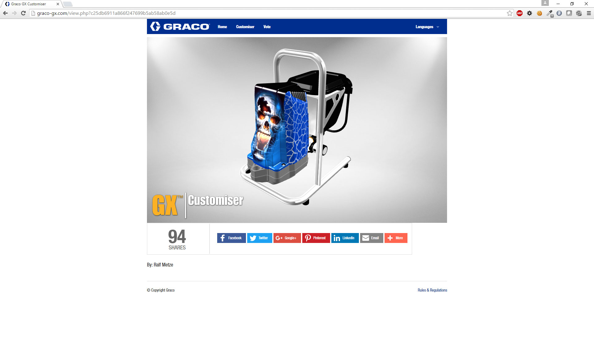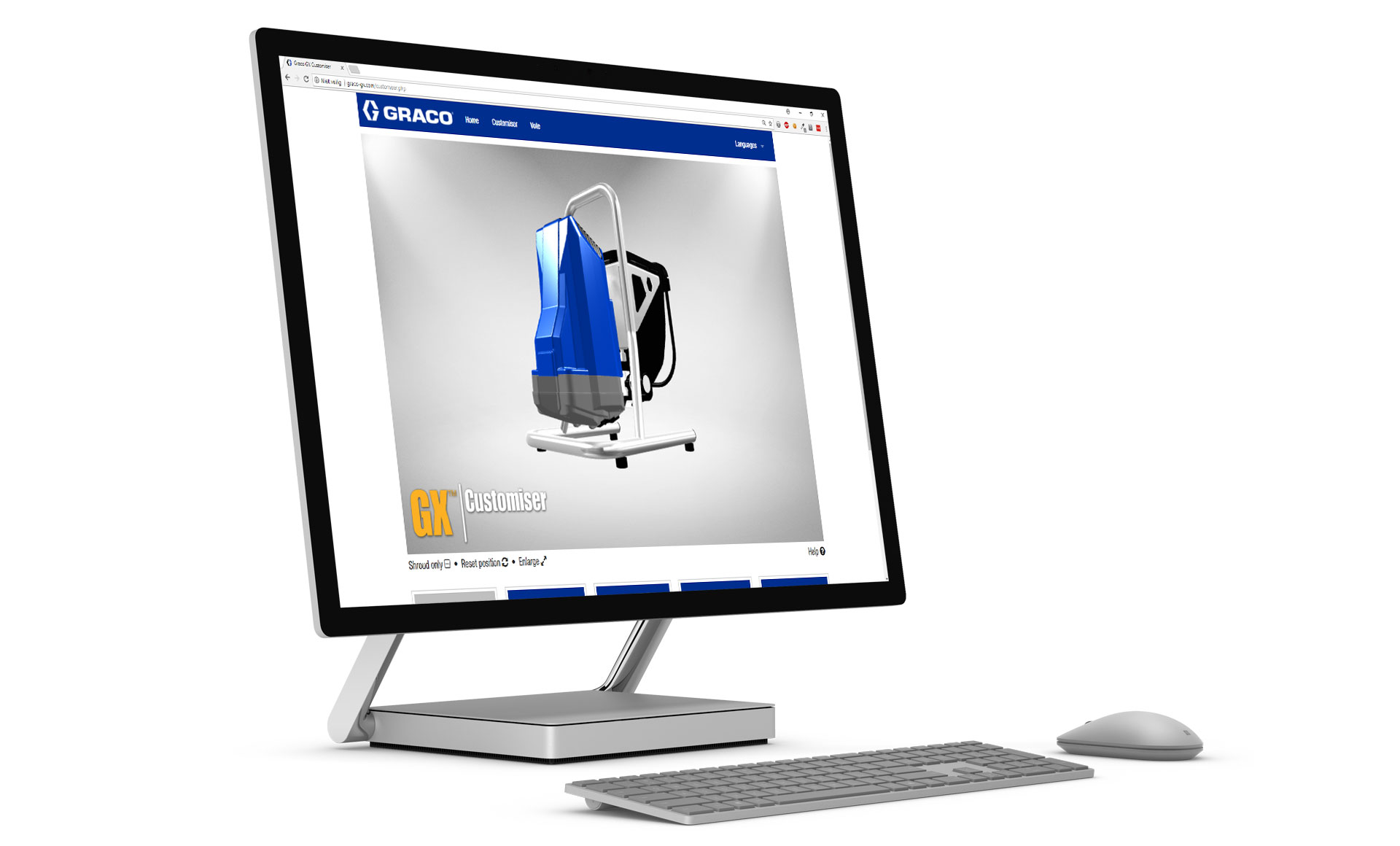 Ter lancering van de GX verfspuit werd een website ontwikkeld waar men het apparaat kan voorzien van een eigen unieke vormgeving. Een model van het apparaat is hiervoor in Blender opgeschoond en wordt via three.js op de site getoond. De applicatie laat verder het uploaden van afbeeldingen en het kiezen van kleuren en vector patronen toe. Het ontwerp met de meeste shares via social media is uiteindelijk ook echt uitgevoerd en overhandigd aan de winnaar.