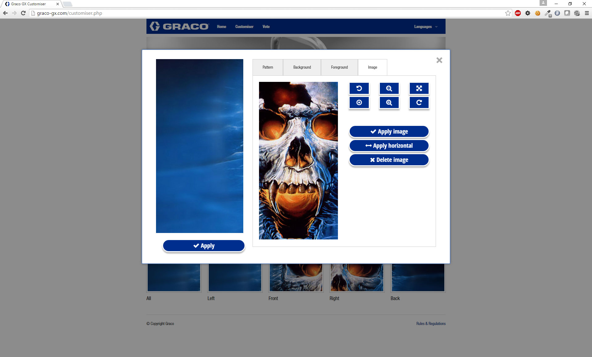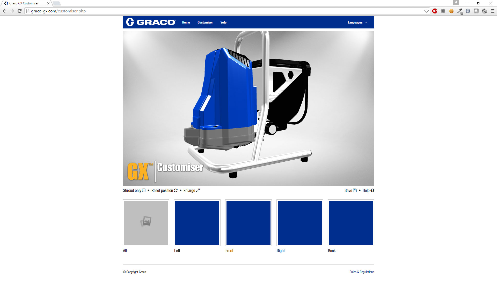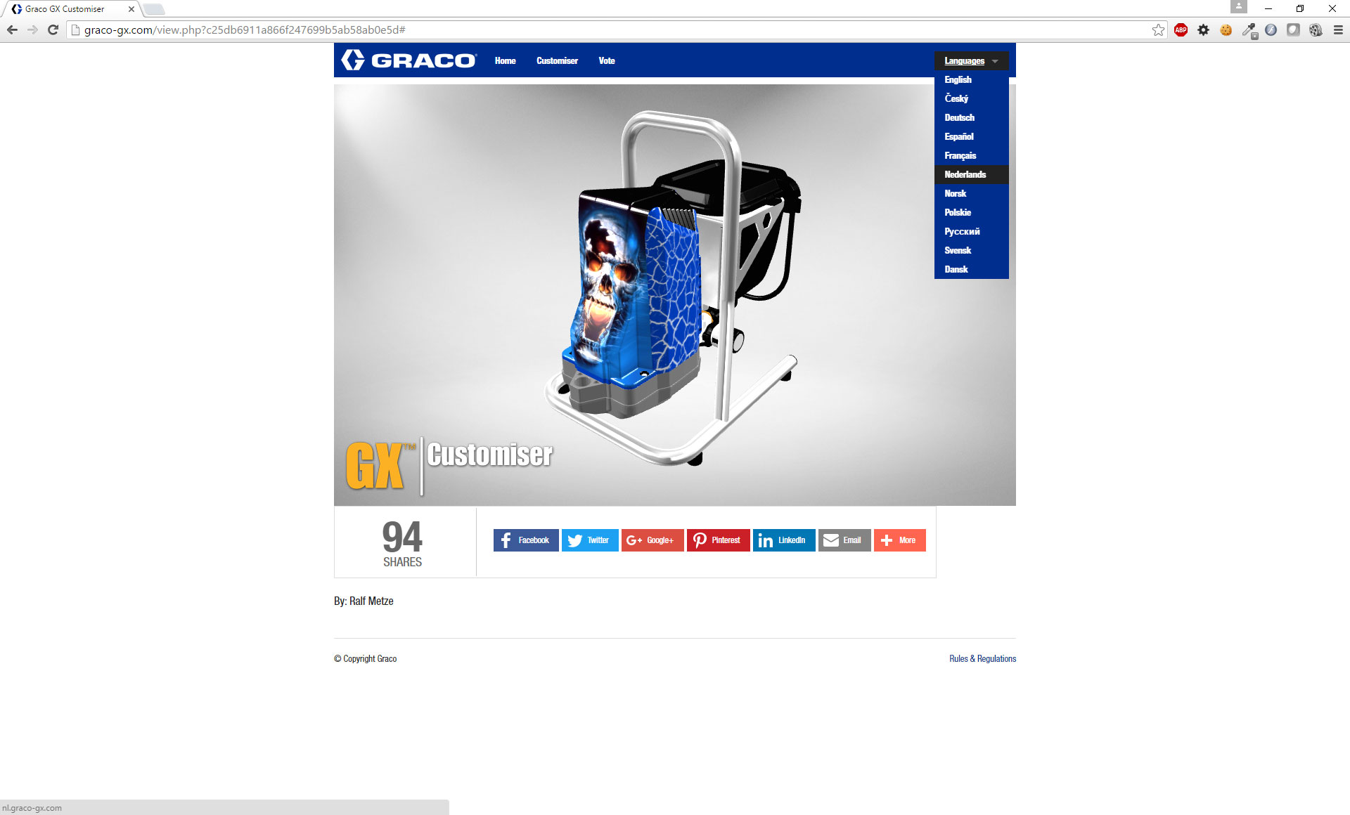 Ter lancering van de GX verfspuit werd een website ontwikkeld waar men het apparaat kan voorzien van een eigen unieke vormgeving. Een model van het apparaat is hiervoor in Blender opgeschoond en wordt via three.js op de site getoond. De applicatie laat verder het uploaden van afbeeldingen en het kiezen van kleuren en vector patronen toe. Het ontwerp met de meeste shares via social media is uiteindelijk ook echt uitgevoerd en overhandigd aan de winnaar.