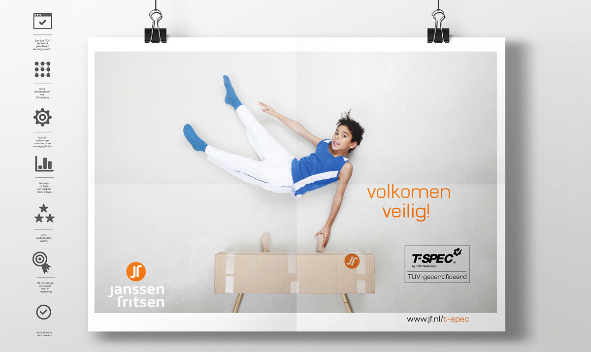 Met T-Spec heeft JF een label waarmee het keuren van sporttoestellen belangrijk is voor de normering en veiligheid.