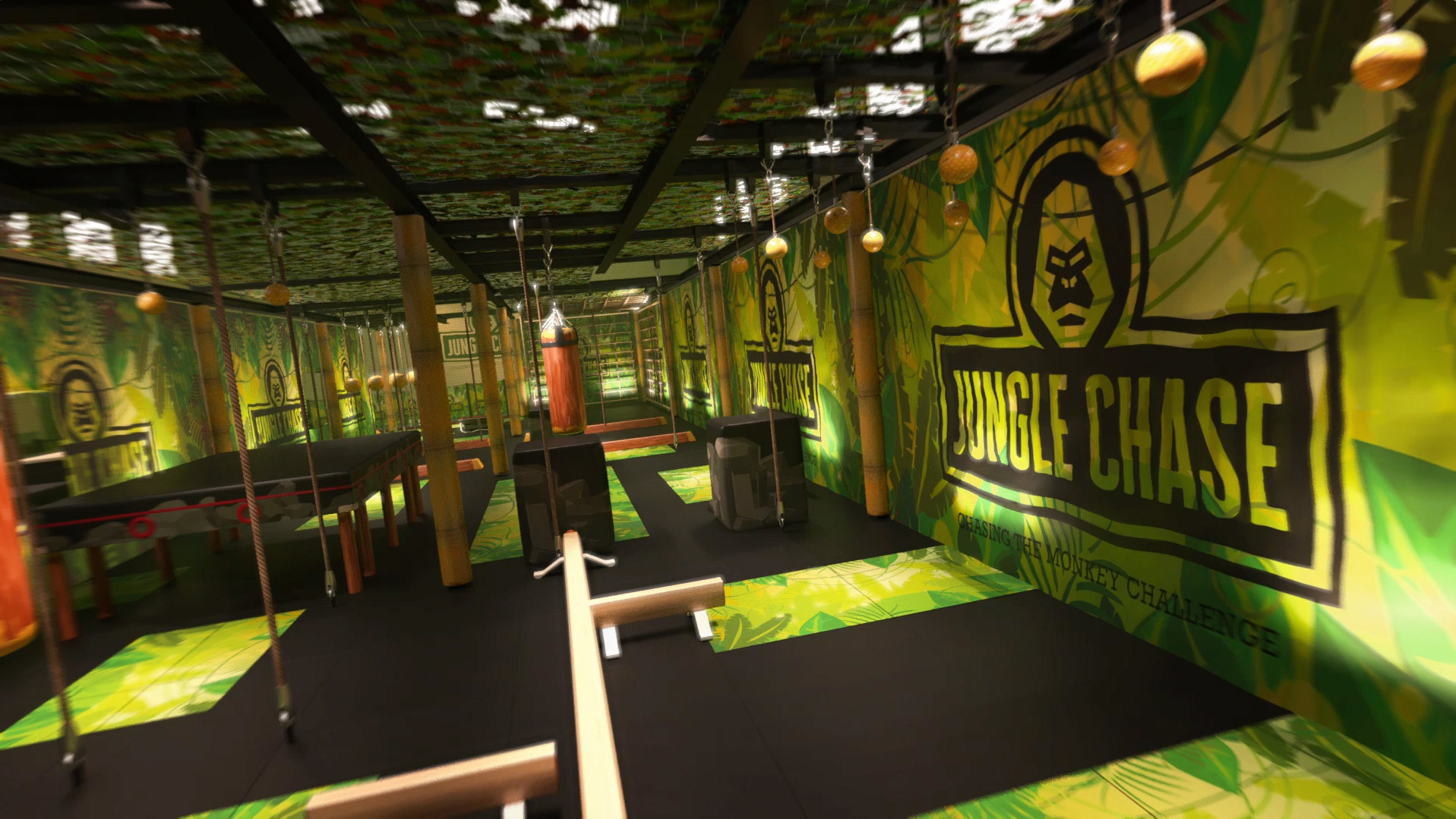 Jungle Chase is een nieuw, innovatief en interactief bewegingsconcept gebaseerd op het populaire “Apenkooien”. Lenigheid, coördinatie, snelheid, uithoudingsvermogen en kracht worden op de proef gesteld in een woud van uitdagingen. De Jungle look & feel zorgt voor 100% beleving én inleving. De rode draad is om met één of meer tikkers de anderen uit te schakelen.