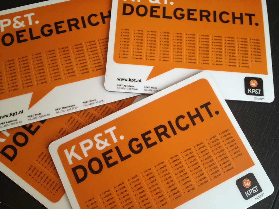Voor KP&T -detacheerder in technisch personeel- werd de huisstijl ontwikkeld met de pay-off: Doelgericht. Inmiddels zijn hiermee diverse uitingen ontwikkeld, waarbij als relatiegeschenk de originele Copa leren voetbal werd toegestuurd. De huidige campagne ‘wij gaan voor een 10’ staat op de website en in de KP&Talk.