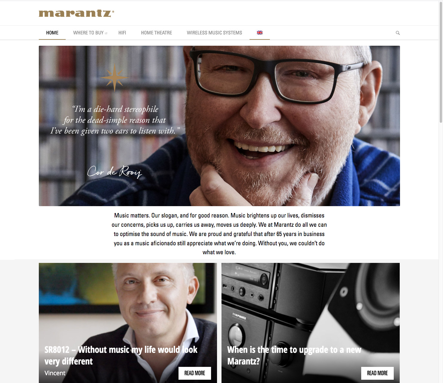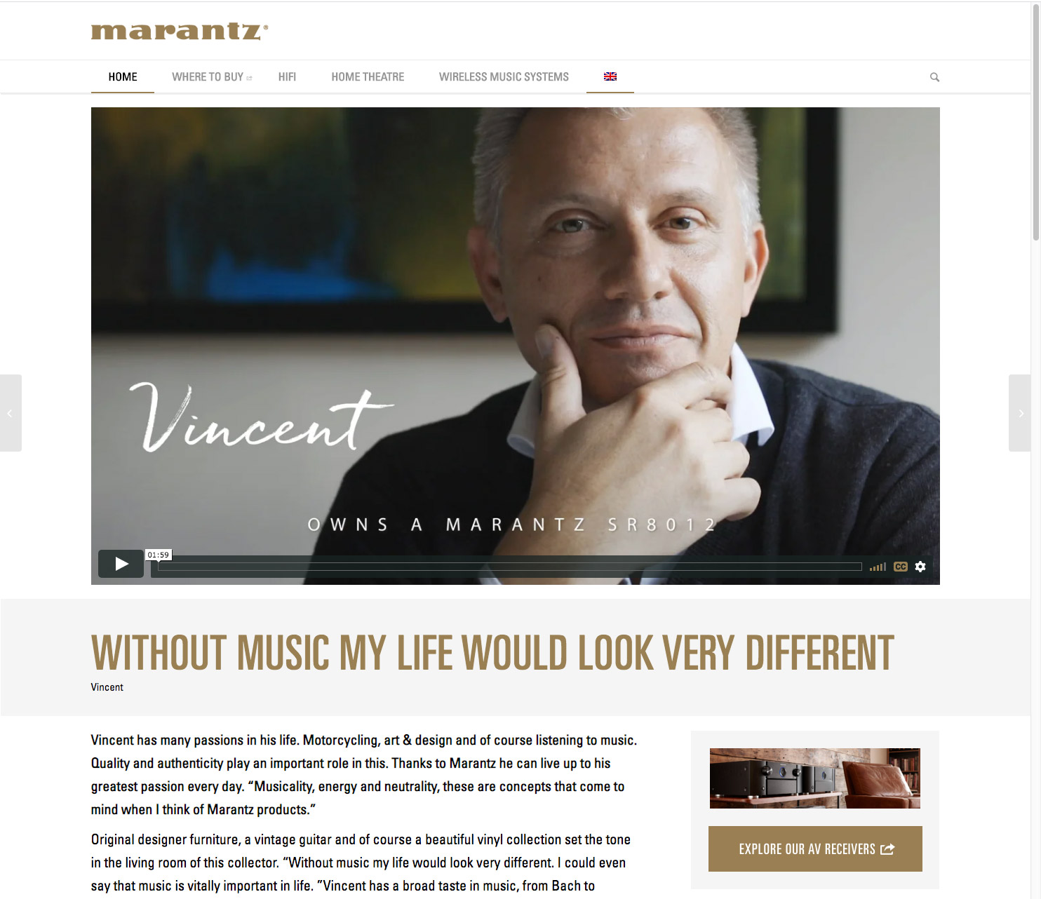 In korte films (die in samenwerking met Scala Photography zijn geproduceerd) nemen een Engelsman, een Fransman en een Nederlander je mee in hun beleving van ‘Because Music Matters’. Binnenkort zullen deze ‘owner stories’ worden aangevuld met nog meer Marantz ambassadeurs uit andere landen.