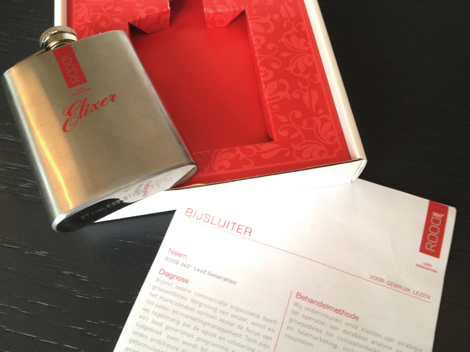 Voor Rood 360 werd de huisstijl en de introductie-mailingactie ontwikkeld die tevens een effectiviteitsprijs heeft gekregen. Een elixer met het recept tot een afspraak, geen wondermiddel maar hét medicijn tot resultaat.