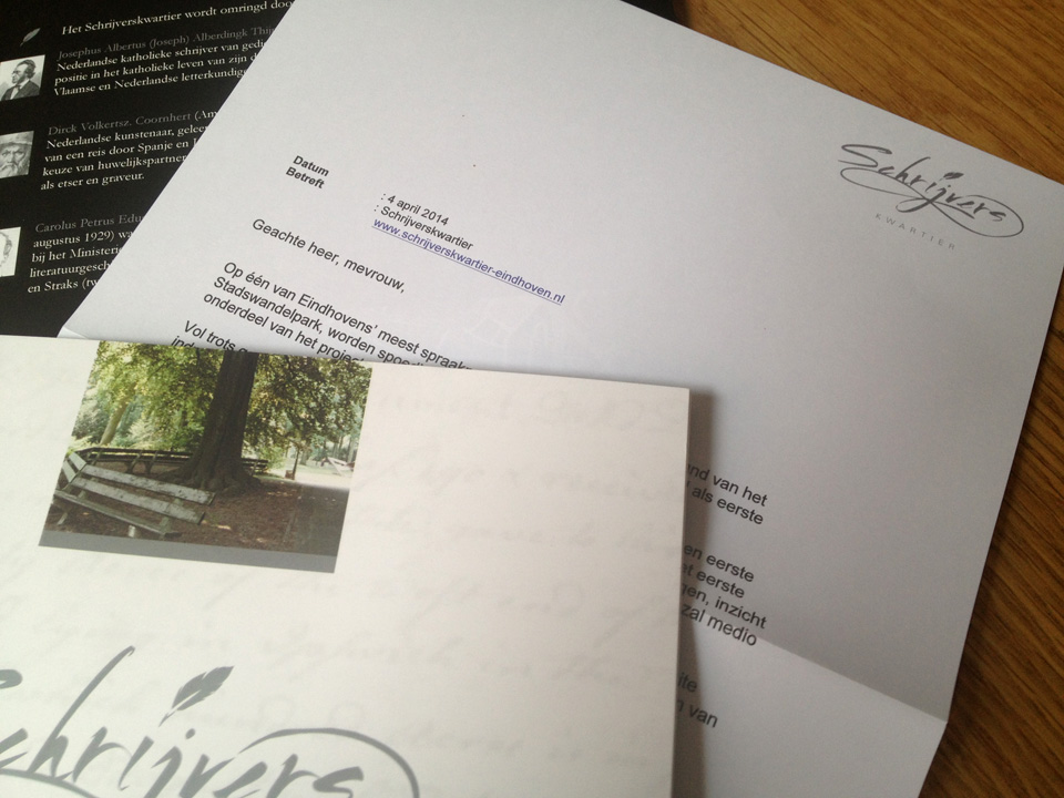 Tegen het Stadswandelpark in Eindhoven worden 52 luxe appartementen ontwikkeld. Voor dit project werd de naam en positionering bedacht; het Schrijverskwartier ligt in de wijk Elzent-Zuid omringd door de schrijvers Alberdingk Thijm, Dirck Volkertsz. Coornhert en Carolus Petrus Eduardus Maria van de Woestijne.