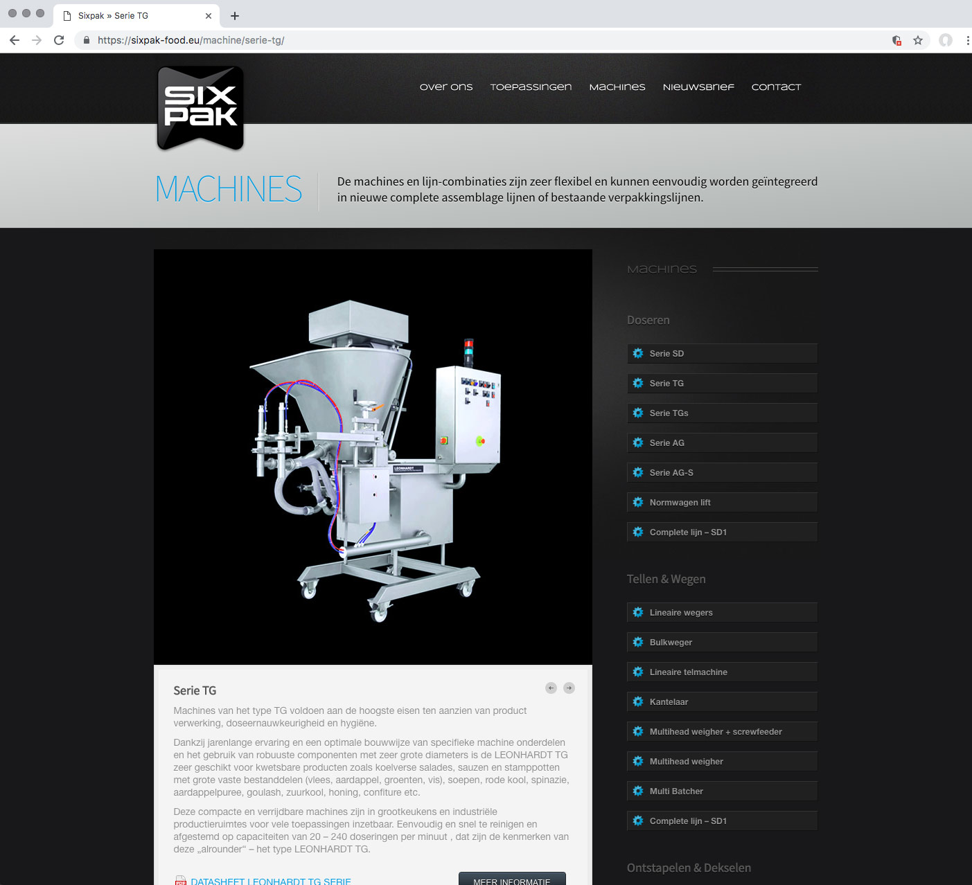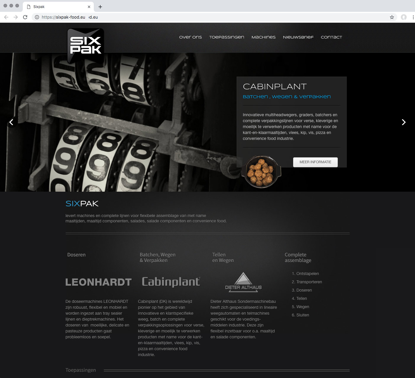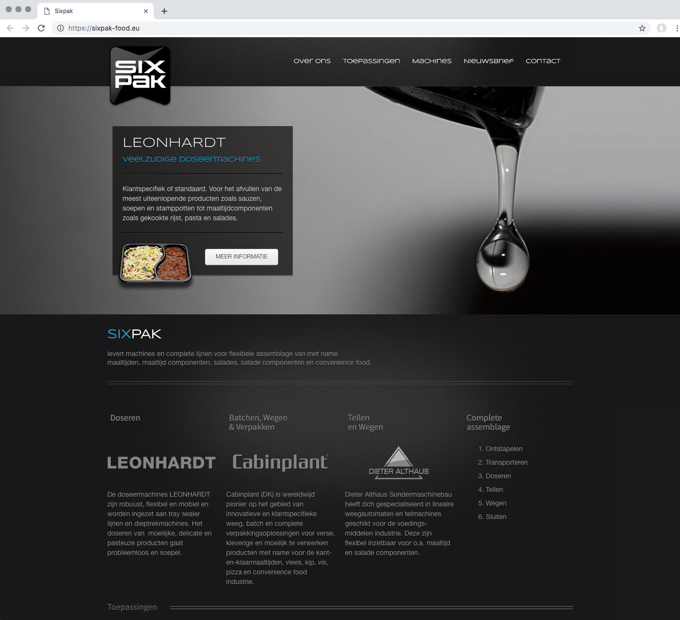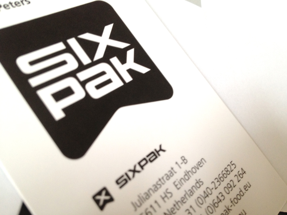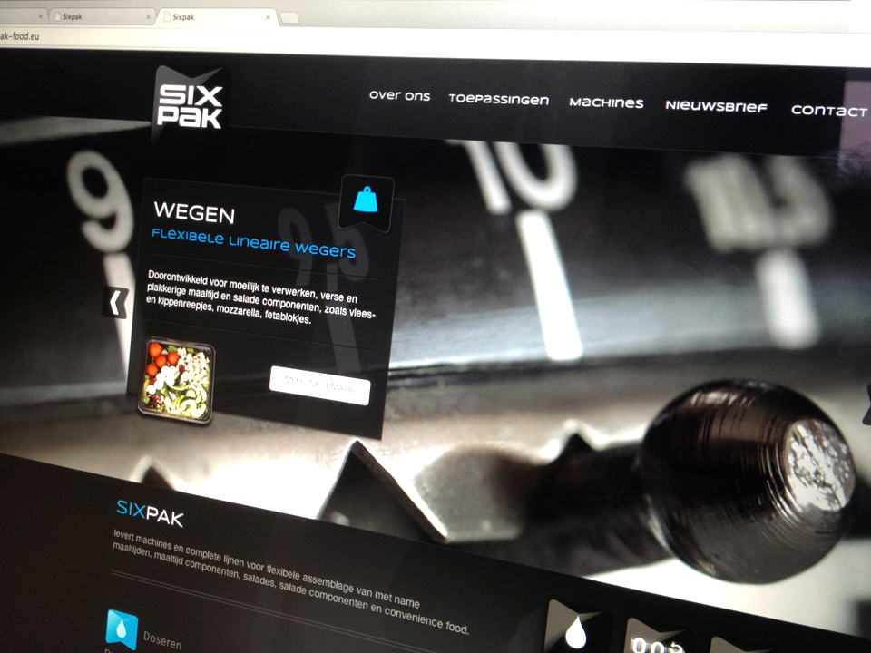Voor het bedrijf Sixpak is de naam ontwikkeld inclusief de huisstijl en website. Sixpak houdt zich bezig met de verkoop van machines voor de voedingsmiddelen industrie. Met name voor het bepalen bij producten waarbij het doseren, tellen en wegen belangrijk is.