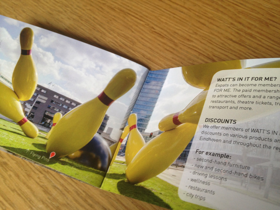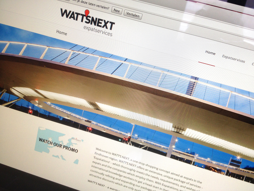 Voor expats die naar Eindhoven en de regio komen is er het bedrijf Watt’s Next dat deze expats begeleidt op het gebied van allerlei faciliteiten. Hiervoor werd de naam, huisstijl en website ontwikkeld en een handzaam boekje met alle ‘Expatations’.