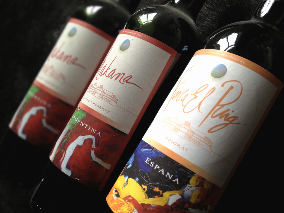 Uit een aantal werken van Antonie de Rooij, zijn wijnetiketten ontworpen voor de exclusieve wijnen die bij restaurant Dimples op BestGolf geschonken worden.